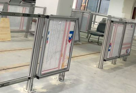 設(shè)備防護圍欄是在設(shè)備外圍建立安全范圍防護措施,以劃分安全范圍,阻隔人或物與設(shè)備直接接觸,起到安全警示作用,常和報警及斷電設(shè)備配套使用??蚣懿糠质褂娩X型材,配合絲網(wǎng)、亞克力、PC等各類板材,通過鋁型材配件安裝膨脹螺栓連接鋁型材立柱和地面。