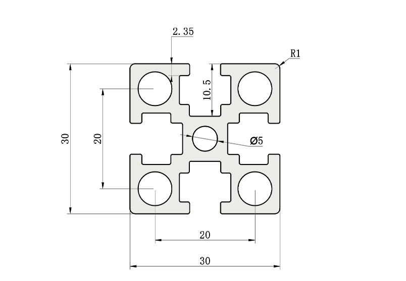 適用于應(yīng)力及強(qiáng)度較大的框架組合結(jié)構(gòu),它的外型采用直角過渡,表面經(jīng)過陽(yáng)極氧化處理,高雅美觀并抗腐蝕,它通常采用M6X20高強(qiáng)度專用螺栓的內(nèi)部連接方式,堅(jiān)固而又可靠,是工業(yè)框架應(yīng)用較為廣泛的型材之一。