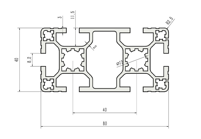 適用于應(yīng)力及強度較大的框架組合結(jié)構(gòu),它的外型采用圓角過渡,表面經(jīng)過陽極氧化處理,高雅美觀并抗腐蝕,它通常采用M8X20高強度專用螺栓加彈性扣件的內(nèi)部連接方式,堅固而又可靠,是工業(yè)框架應(yīng)用較為廣泛的型材之一。